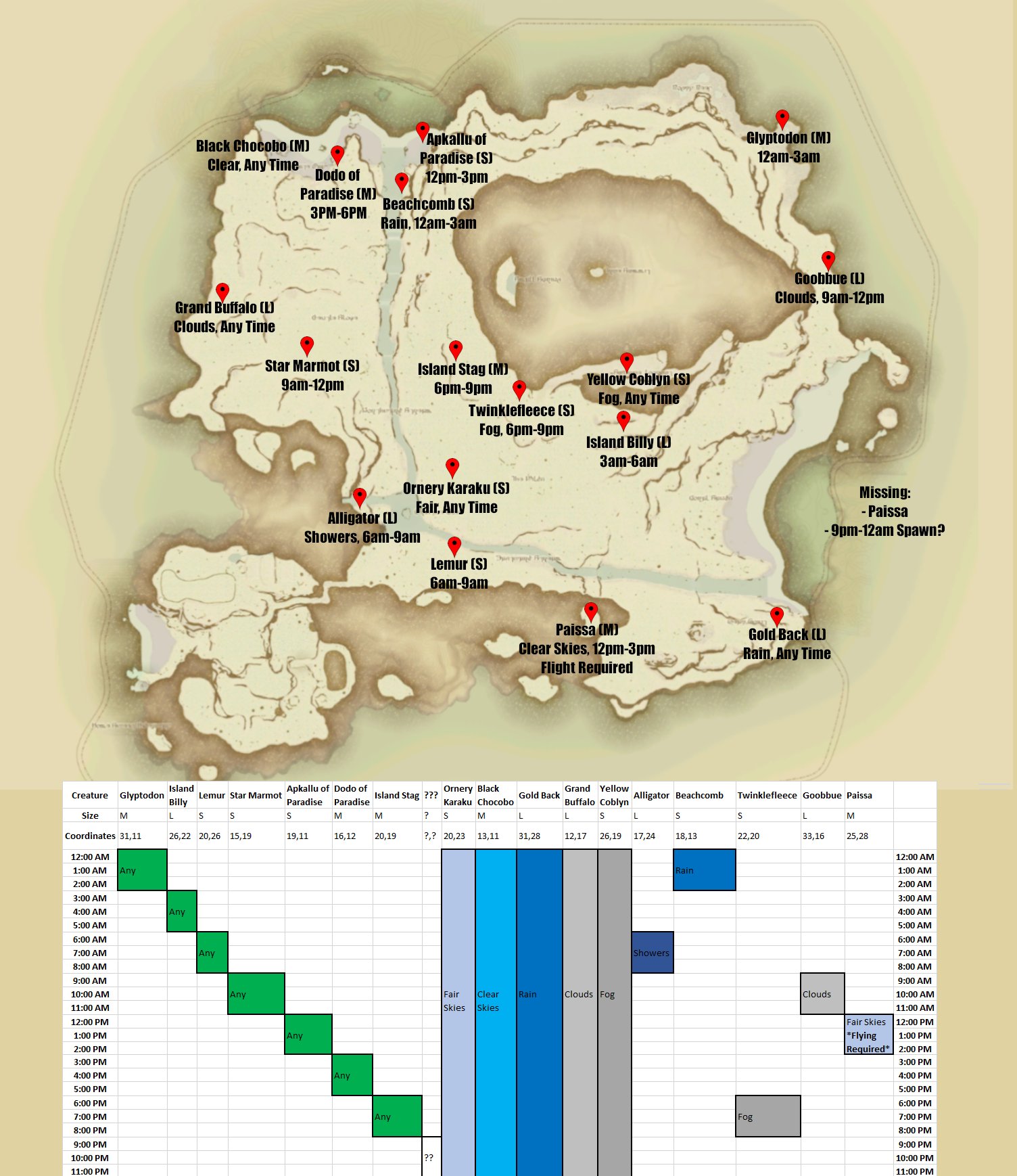 r/FFXIV on X: “”Island Sanctuary Rare Creature Map and Chart